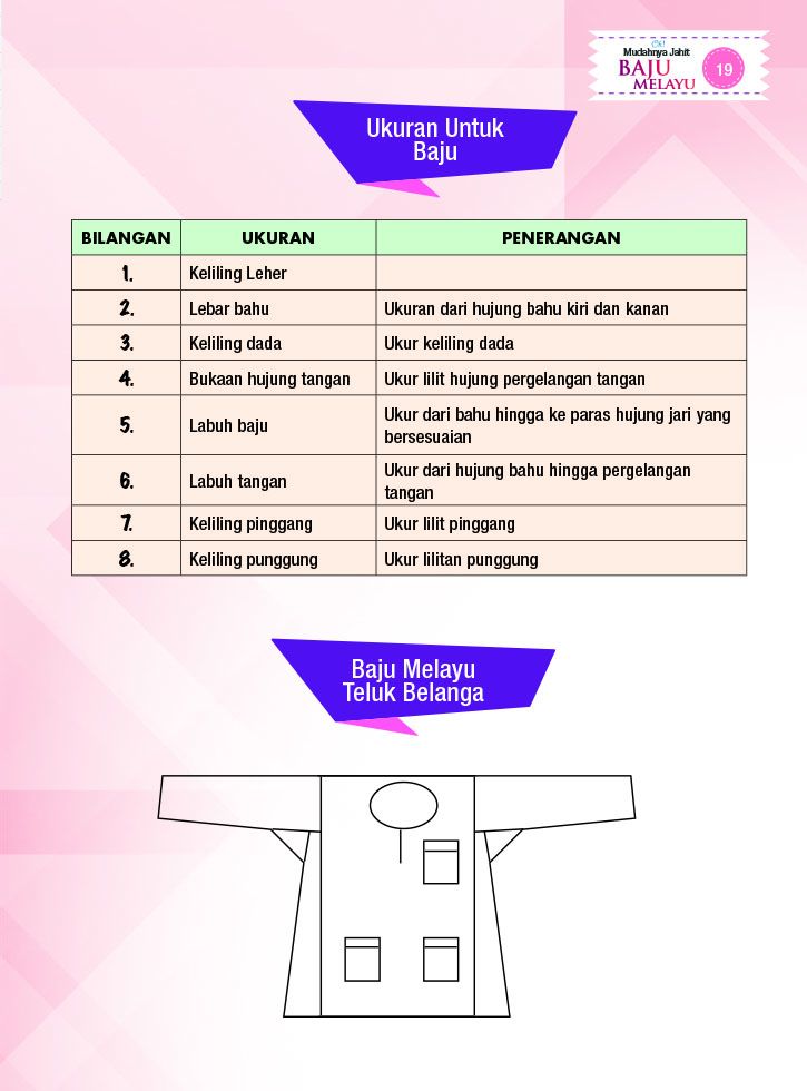 Kenapa harus memiliki buku ini: - Pola bercetak secara percuma - Lengkap langkah demi langkah bergambar. - Senang untuk difahami. - Penulis yang berpengalaman dalam bidang jahitan. - Kesemua langkah lengkap diajar bermula dari membuat pola, memotong kain dan sehingga menjahit kain.